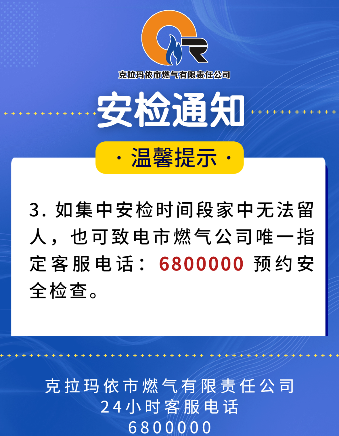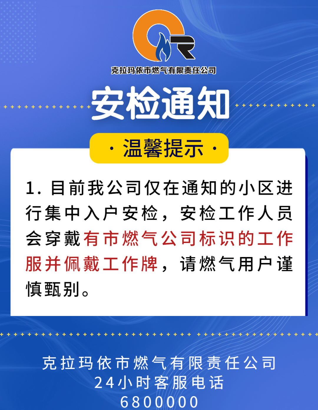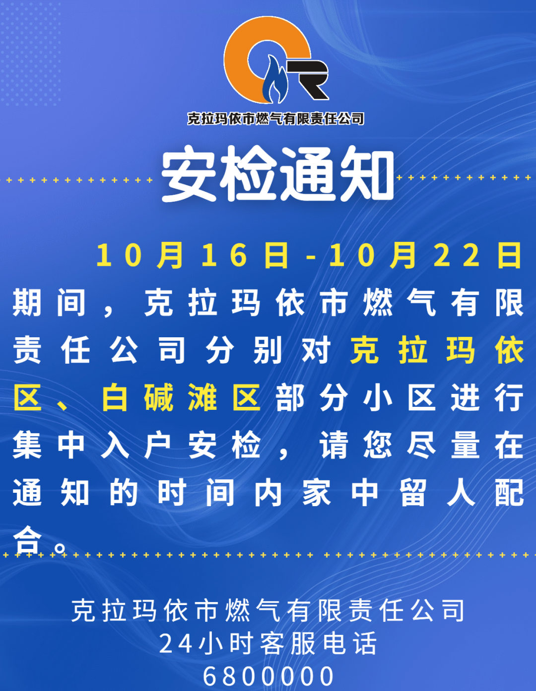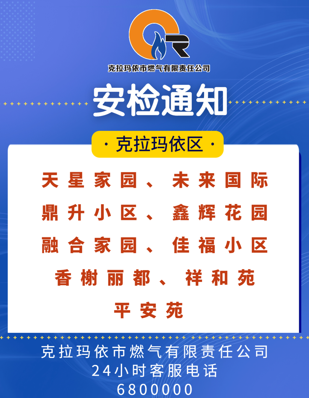 【通知】克拉玛依市燃气公司安检通知!