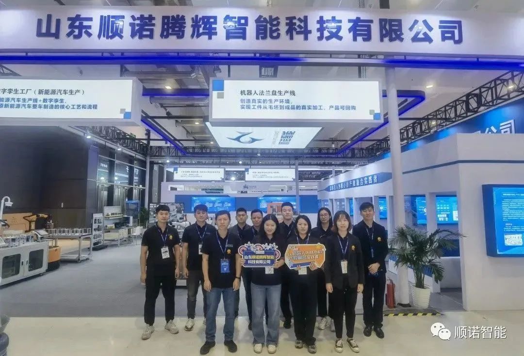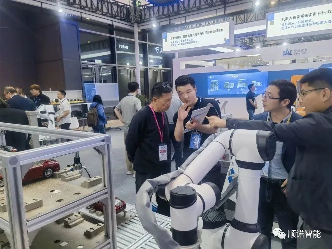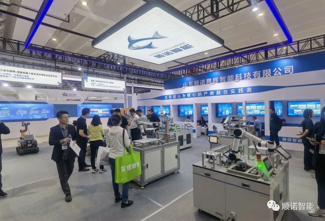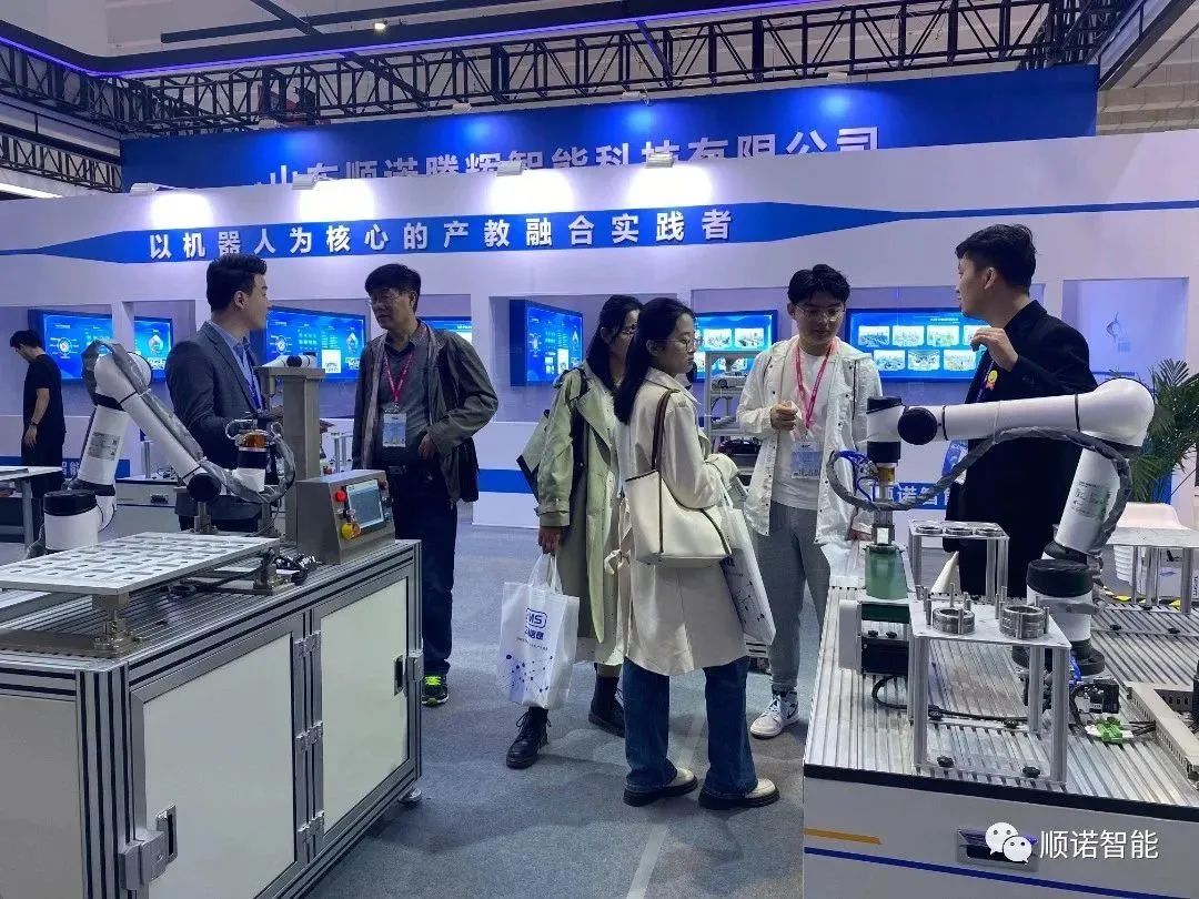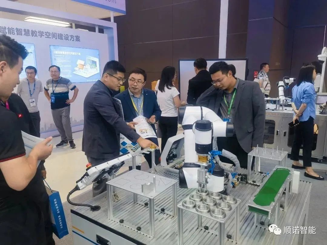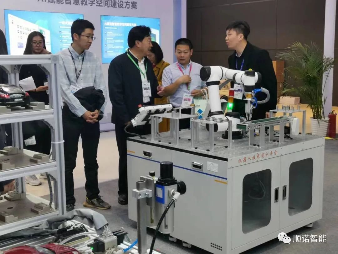 作为以机器人为核心的产教融合实践者,顺诺智能携新能源汽车智能制造实训生产线系列产品和双1+X证书|工业互联网+智能机器人技术及应用综合实训平台亮相本届高博会。