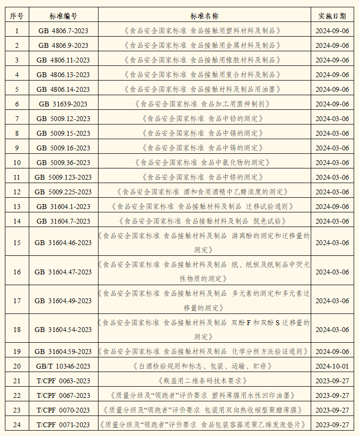 泸州老窖股份有限公司始终秉持“让中国白酒的质量看得见”的质量理念,严格执行相关政策法规及标准,主动跟踪行业政策法规和标准动态,提升白酒产业链标准化水平,持续推动公司高质量发展。2023年三季度,泸州老窖对白酒行业重要政策法规和标准变化情况进行了梳理,详细如下: