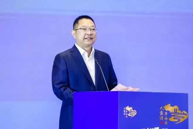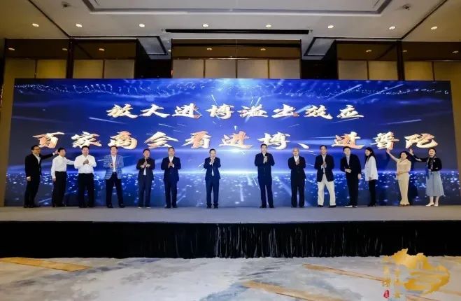 肖文高代表普陀区委、区政府向出席活动的各位领导和嘉宾表示欢迎,他在致辞中表示,近年来,普陀认真贯彻党中央国务院、市委市政府决策部署,发挥自身优势、抢抓开放机遇,以“中华武数”科创布局的构建、“半马苏河”工笔画的绘就、“一带一心一城”重点地区的建设为抓手,不断放大进博会溢出带动效应,交出了可喜的成绩单。普陀将始终秉承“人靠谱(普),事办妥(陀)”的精神,全力以赴做好第六届进博会各项服务保障工作,同时以此活动为契机,充分发挥“6 天+365 天”交易服务平台功能,营造一流的营商环境,搭建开放广阔的舞台,让进博机会、进博红利、进博成果惠及更多企业。 普陀区副区长蒋龙作区情介绍,他提到:普陀区是上海连接长三角及内地的重要交通枢纽,是沿沪宁产业创新带上的重要节点,是上海中心城区中最具想象空间和投资潜力的一块创新创业热土。普陀当下有为、未来可期,正全力打造“中华武数”科创布局;正全力建设“半马苏河·七彩秀带”;正全力营造“人靠谱(普),事办妥(陀)”营商环境。他真诚邀请各位企业家走进普陀、投资普陀、扎根普陀。 上海市各地在沪企业(商会)联合会常务副会长、上海市江苏商会会长、月星集团董事局主席丁佐宏(中)
