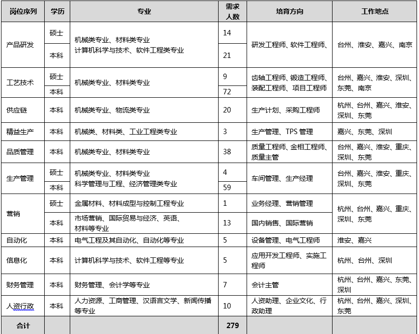 2、工作地点:杭州、台州、嘉兴、淮安、南京、重庆、东莞、深圳等地。