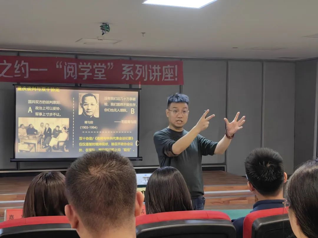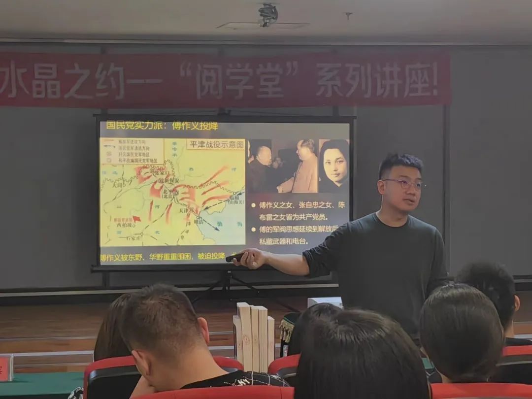 常啸老师利用自身的知识储备,通过讲述国民党内部的矛盾不和、“四一二”反革命政变中杀害大量共产党员和国民党内的先进分子、共产党通过民心和优秀的党内制度等等如何一步步取得了解放战争的胜利,也分享了诸如在1949年10月1日当天,残余的国民党势力想破坏开国大典而又失败等一系列故事,同学们都全身贯注,听得津津有味。