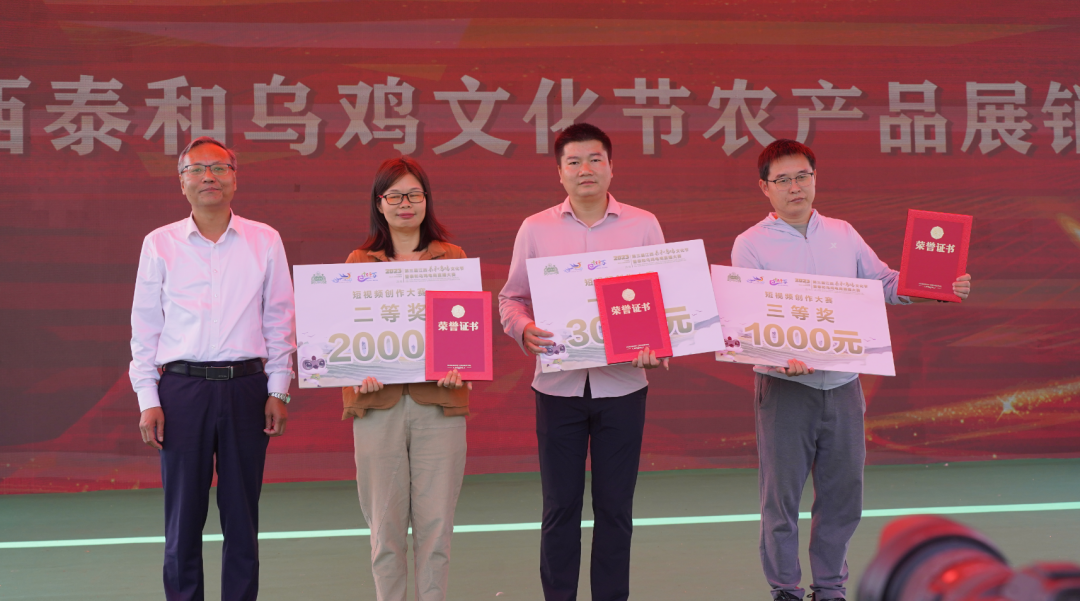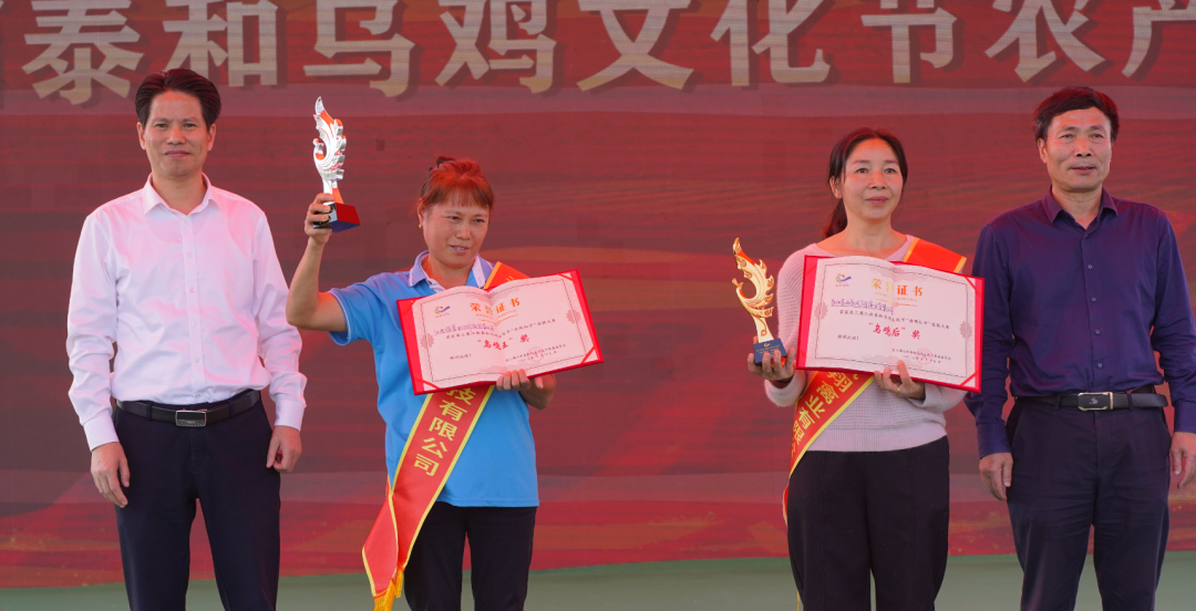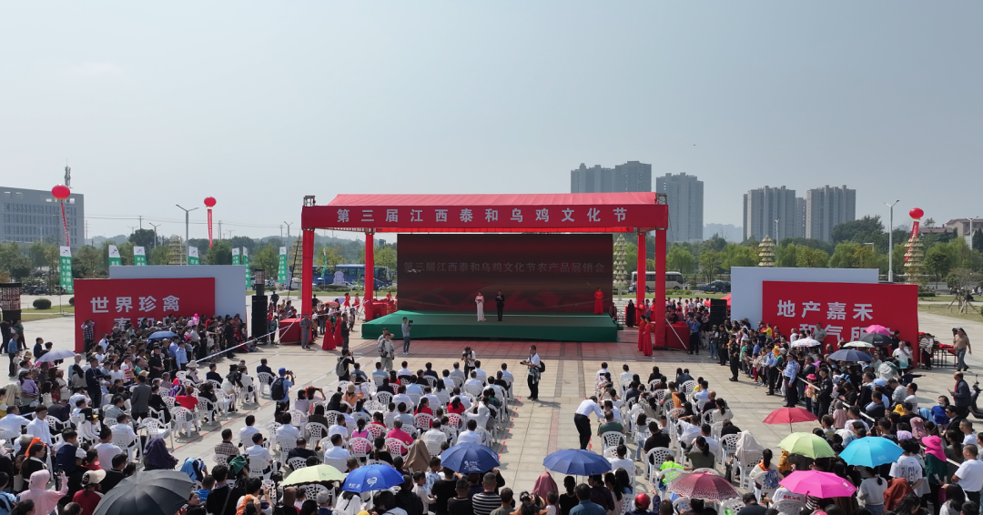 10月15日,第三届江西泰和乌鸡节农产品展销会暨“白凤仙子”选拔大赛在市民广场举行。江西省农科院原副院长、研究员谢金防,省农业农村厅种业管理处副处长胡伟平,省农业农村厅农产品质量安全监管局局长刘晓斌,江西省家禽业协会理事长、江西省家禽产业体系研究员韦启鹏,江西省农科院农产品质量安全与标准研究所副所长研究员张大文,北京江西商会会长、泰康保险集团监事长刘经纶,及郭道经、夏得烈、林梅、罗克帅、刘苑敏等县领导出席活动。 活动在锣鼓秀中启动,谢金防、刘晓斌、郭道经分别为在“白凤仙子”选拔大赛中荣获白凤仙子奖、乌鸡王奖、乌鸡后奖的获奖企业颁奖,郭道经、葛英才分别为电商直播大赛前六名颁奖。 随后,泰和乌鸡系列产品发布,汉溪凤400天散养原种泰和乌鸡、汉溪凤泰和乌鸡初生蛋、未来博士(1+8)泰和乌鸡蛋固体饮料、白凤贵宾礼品酒等十余种乌鸡特色产品发布,吸引来往观众纷纷驻足。 展会还设立了农产品展销区、百鸡展示区、网络直播区,邀请了全国各地的名鸡品种前来参展,还有土特产、井冈山区域品牌农产品等也尽相陈列,吸引了众多市民前来品尝和购买。