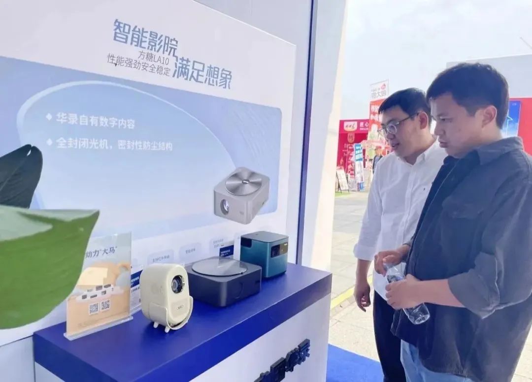 此次在马博会展出的新品方糖LA10,配置海思旗舰芯片,采用一体式全密闭光机,支持智能避障、自动梯形校正、自动入幕、红外传输等,智能体验感拉满,同时,出厂预装华录自有数字内容听戏APP,用户可以畅享海量正版戏曲资源。