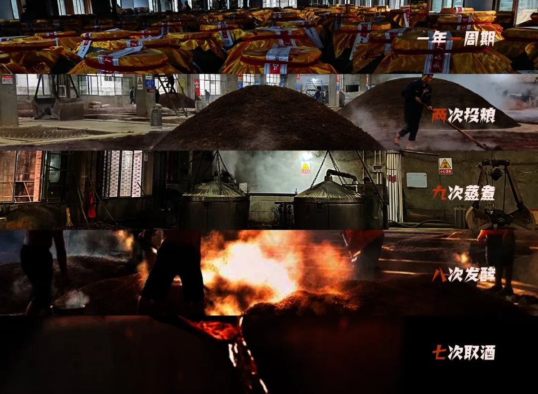 端午制曲,重阳下沙,两次投料,九次蒸煮,八次发酵,七次取酒,30道工序,165个生产环节,一个都不能少。