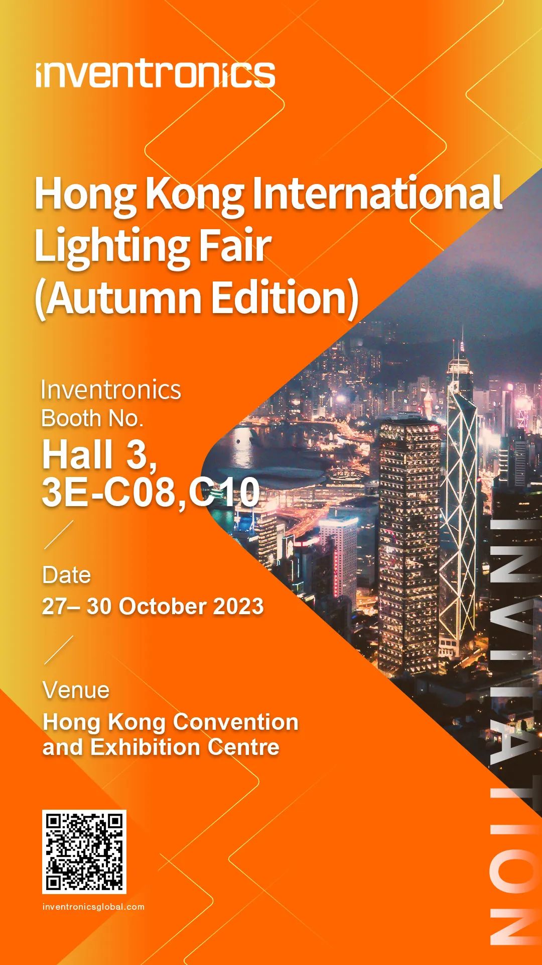 2023年香港国际秋季灯饰展Hongkong International Lighting Fair(Autumn Edition) 将于10月27-30日在香港会议展览中心召开,英飞特电子展位号:3E-C08, C10。