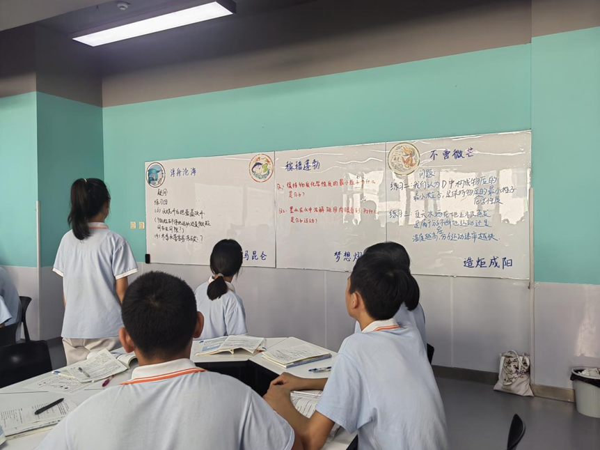 我的课型是:基于科学论证的对分课堂。对分课堂是上海复旦大学教授张学新提出的,是时间对分,权责对分的课堂,让学习真实发生的课堂。主要包括精讲留白,独立内化,小组讨论,师生答疑四个教学环节,在精讲环节我用15分钟通过讲授知识构建了科学论证的模型,引导学生独立内化自学8分钟,学生小组交流了8分钟完善推理过程解决个人问题,最后师生答疑解惑9分钟。