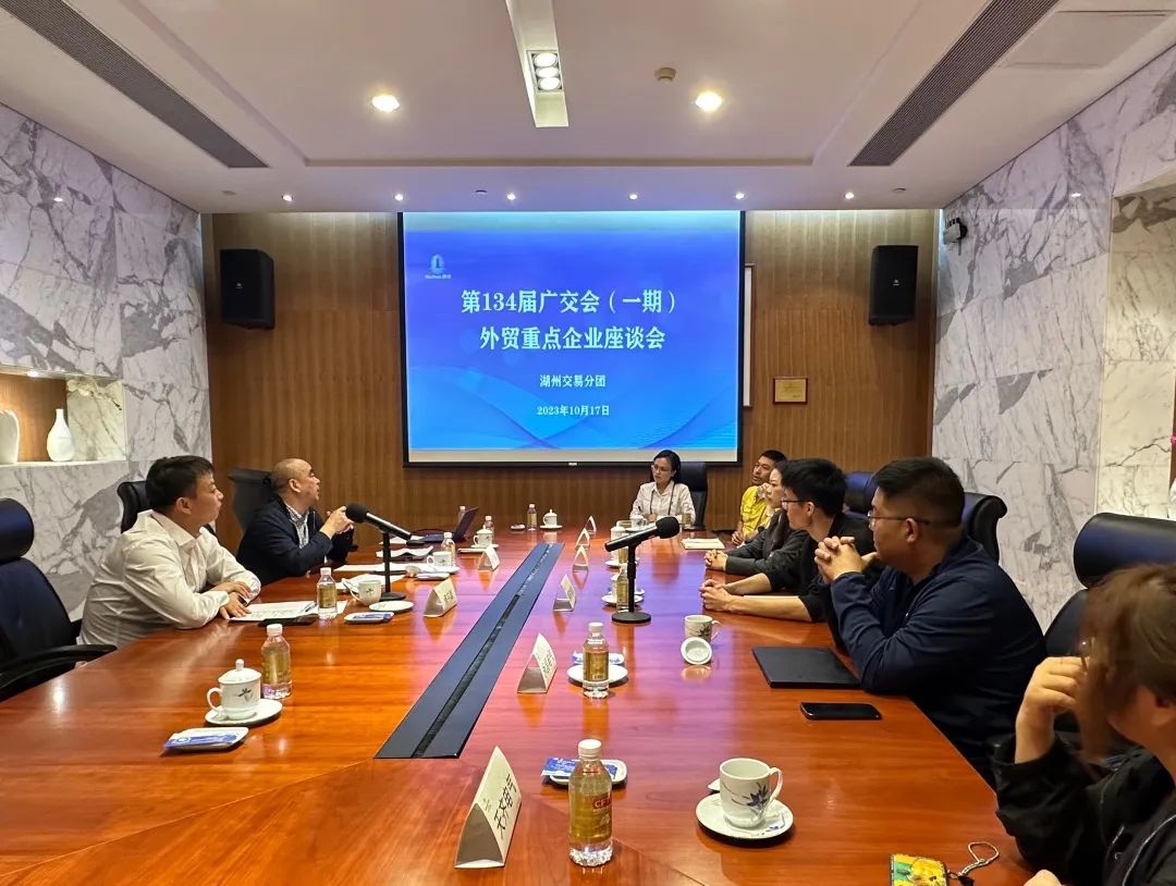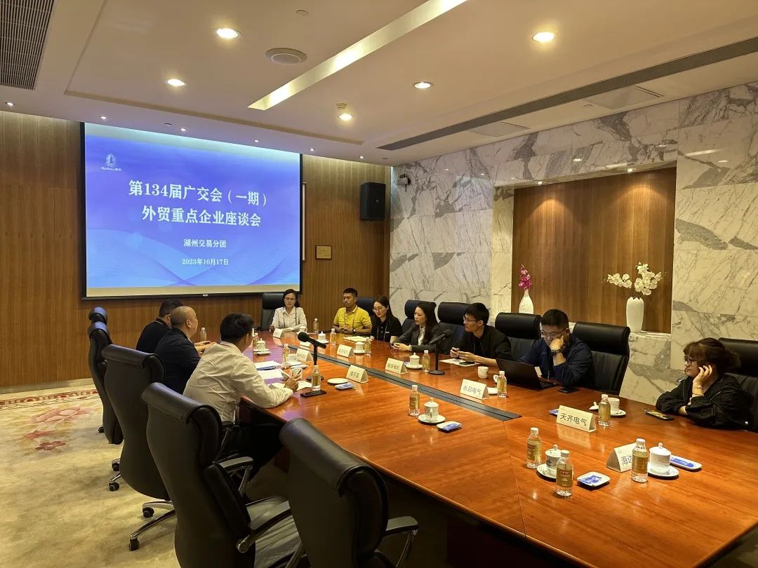 为进一步了解第134届广交会我市企业的参展情况,10月17日,我市召开广交会一期重点参展企业座谈会,美高电气、越球电机、振华工贸、正导技术、永昌电气等8家重点参展企业负责人,市商务局党委委员、副局长傅宇晨,局外贸处参加本次座谈会。