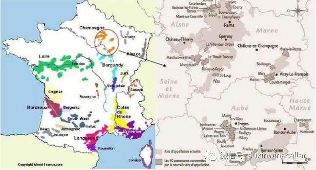 香槟地区(Champagne)在法国巴黎以东,兰斯市(Reims)周围,包括马恩省(Marne)、埃纳省(Aisne)和奥布省(Aube)的一部分区域。香槟地区是香槟酒的产地,根据法国法律只有香槟地区出产的香槟酒才能称为香槟酒,其他地区出产的同类酒只能称为“发泡葡萄酒”。