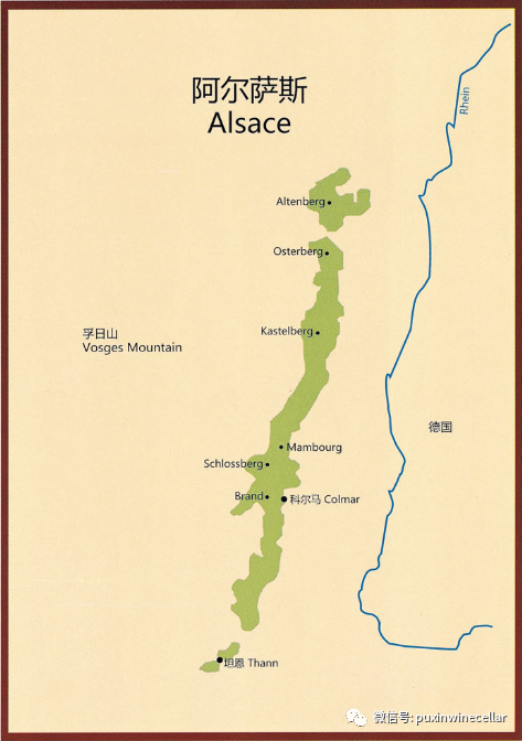 阿尔萨斯产区的气候属于半大陆性气候,位于法国的东北部,在孚日山脉(Vosges)和莱茵河之前。阿尔萨斯大部分优质的葡萄园都位于东面向阳的坡地上,土壤变化多端,有花岗岩、黏土、石灰石、砂石、火山土等。差一些的葡萄园位于平原地区,大多是肥沃的冲积土。用来酿造起泡酒(Cremant d'Alsace)或是普通级别的葡萄酒。阿尔萨斯有七大葡萄品种,六种白葡萄酒的葡萄品种和一种红葡萄酒的葡萄品种,它们各具特色常被比喻为七仙女。葡萄酒大多以单品种酿造,会在酒瓶的酒标上标注葡萄品种,读起来简单易懂。琼瑶浆(Gewurztraminer)、雷司令(Riesling)、灰皮诺(Pinot Gris)、麝香(Muscat)、白皮诺(Pinot Blanc)、黑皮诺(Pinot Noir)、西万尼(Sylvaner)