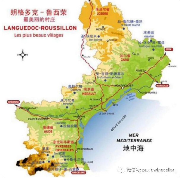 朗格多克-鲁西荣产区(Languedoc-Roussillon)主要种植歌海娜 、佳丽酿、西拉、慕合怀特和神索。