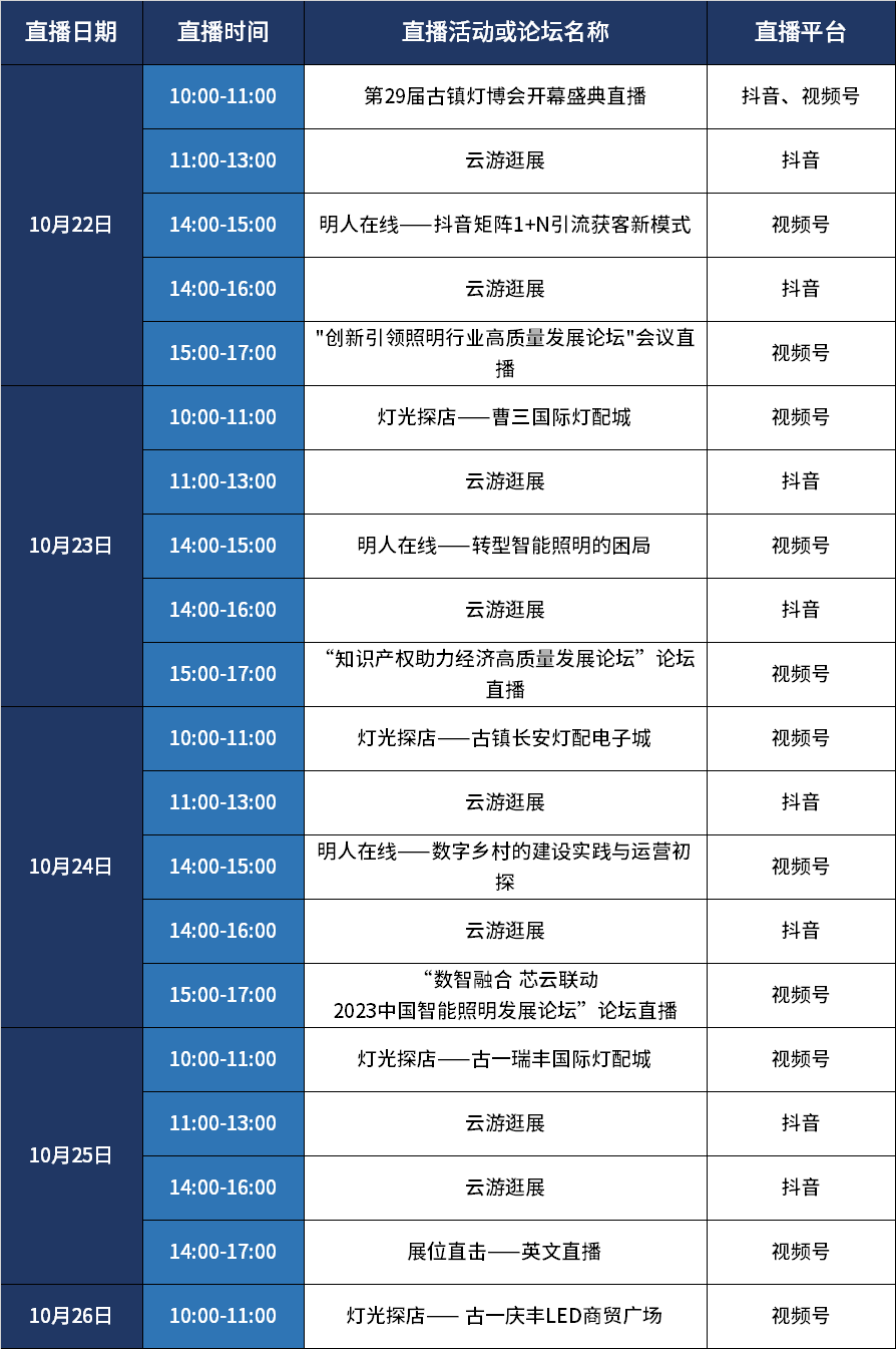 线上云端秀直播的活动包括:明人在线直播论坛、灯光探店、云游逛展等。