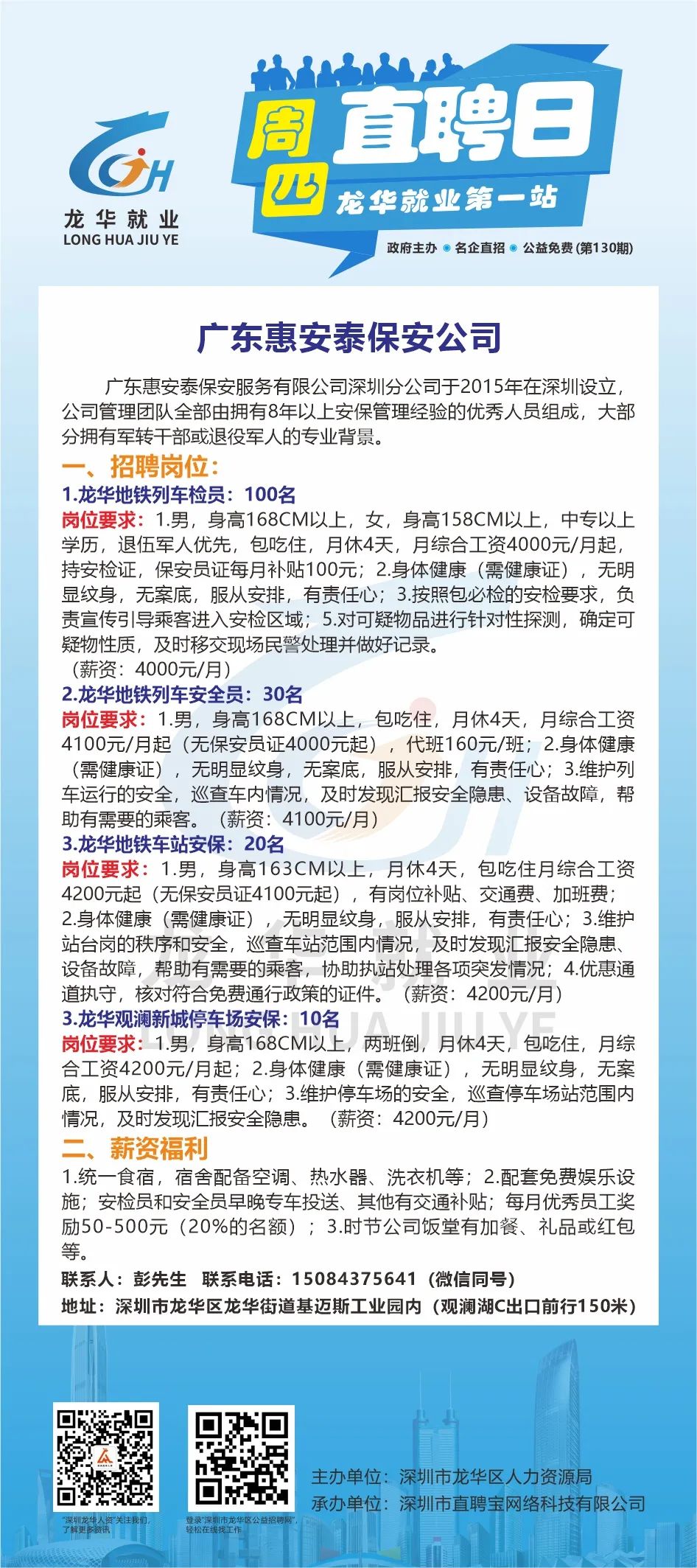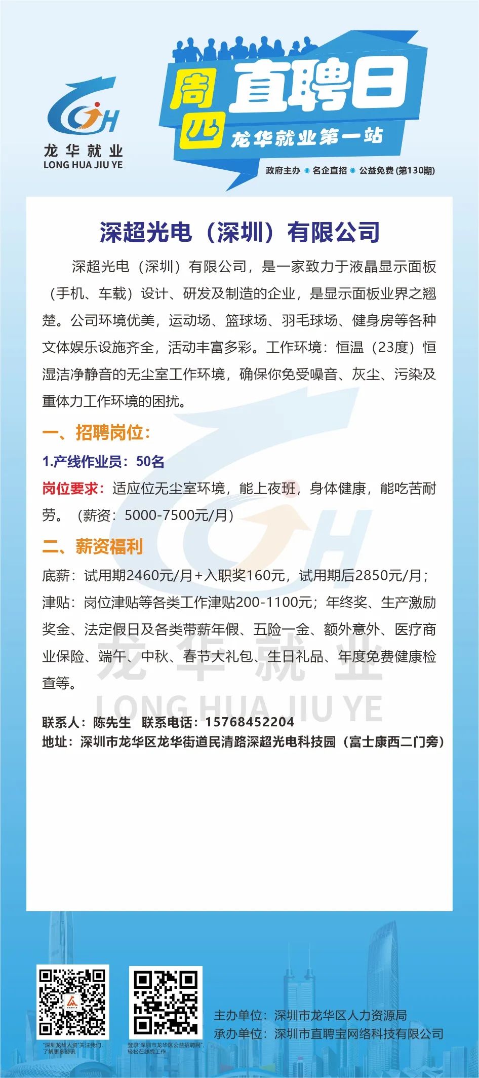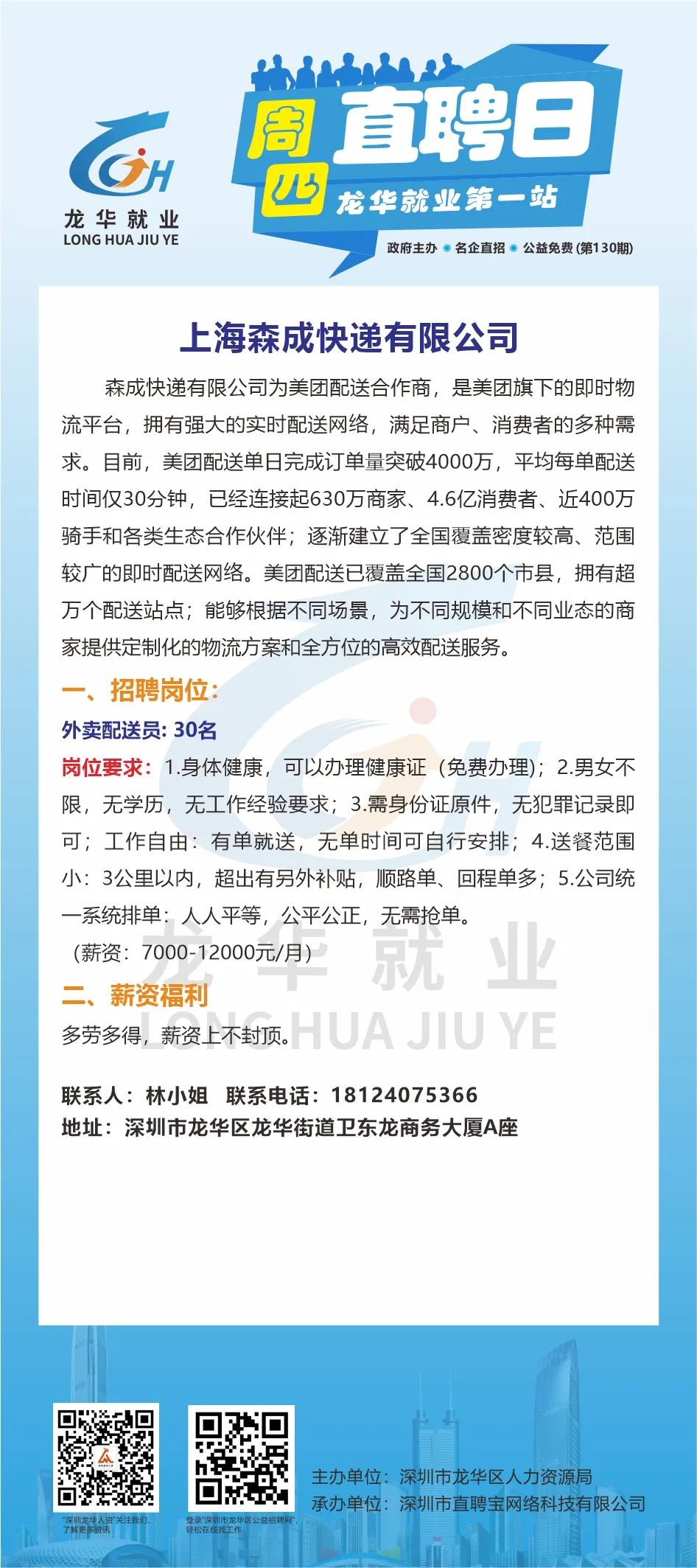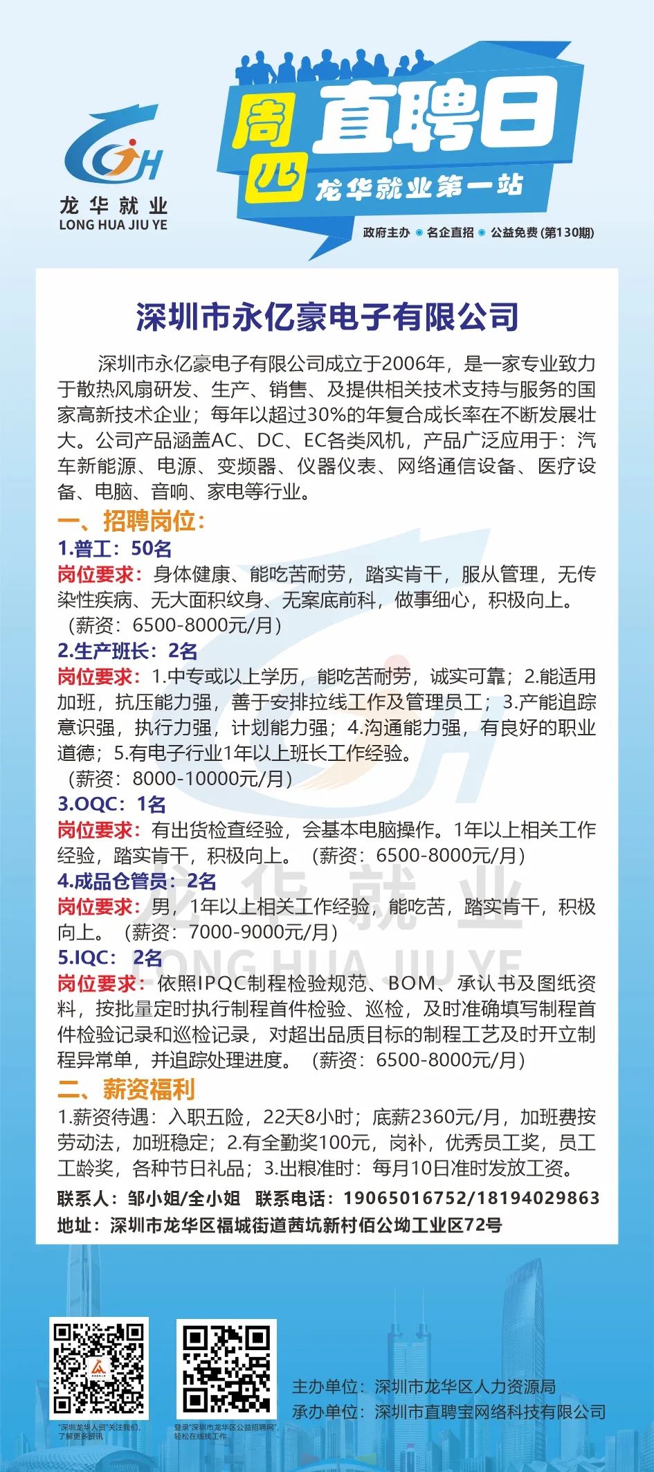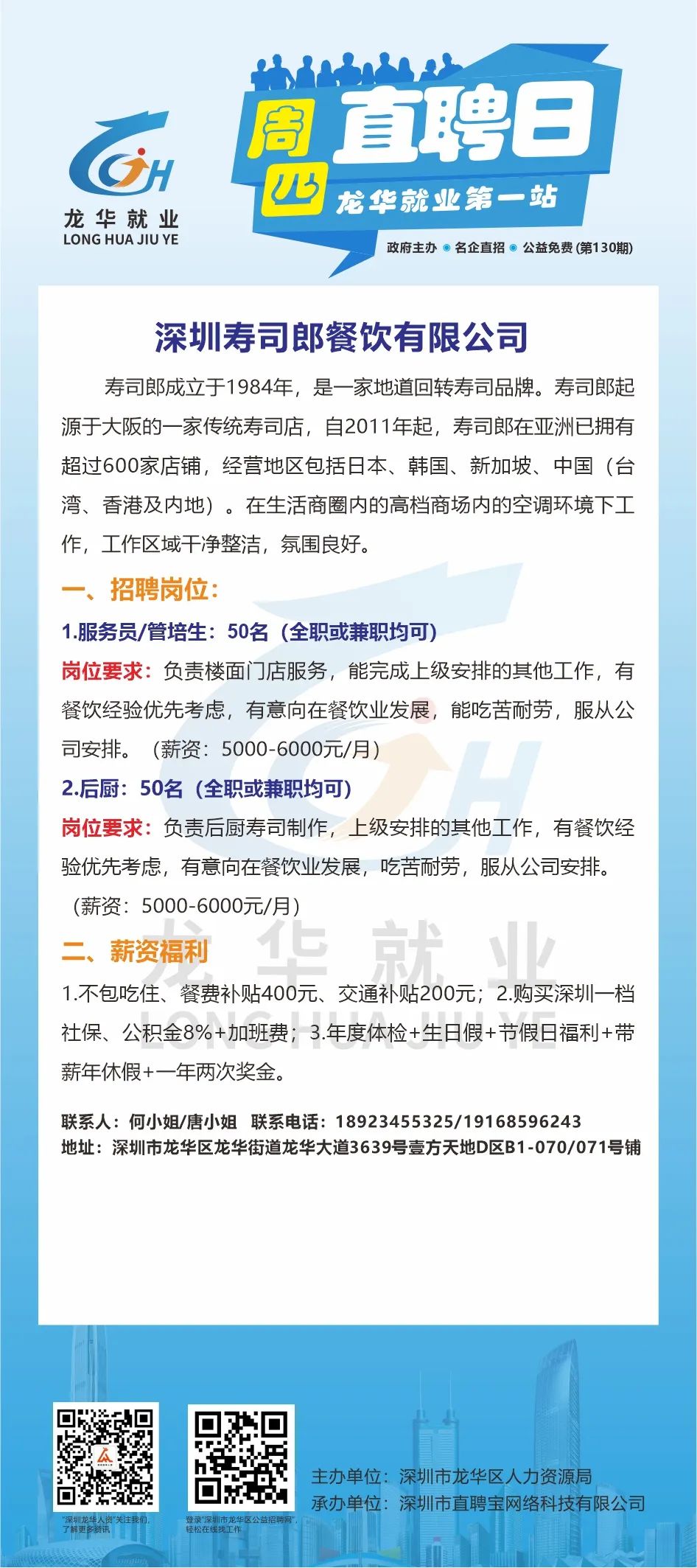 此次招聘活动不限户籍,面向广大有意来龙华就业的求职者,包括但不限于龙华区企业务工人员/灵活就业人员/高校毕业生/龙华区及对口帮扶地区户籍居民/残障人士/退役军人、随军家属等群体参加。