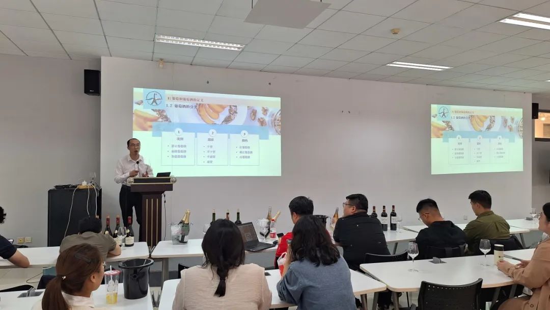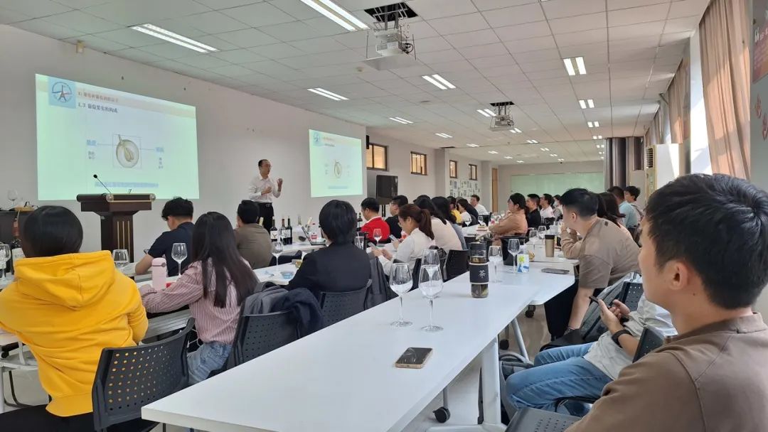活动伊始,范总侃侃而谈,向大家介绍了葡萄酒的定义、分类、酿造工艺,常见的葡萄品种及它的口味风格特点和产地。然后,范总为同学们讲解如何品鉴葡萄酒以及它的选购、储存指南,让大家在轻松愉悦的氛围中学到新的知识。