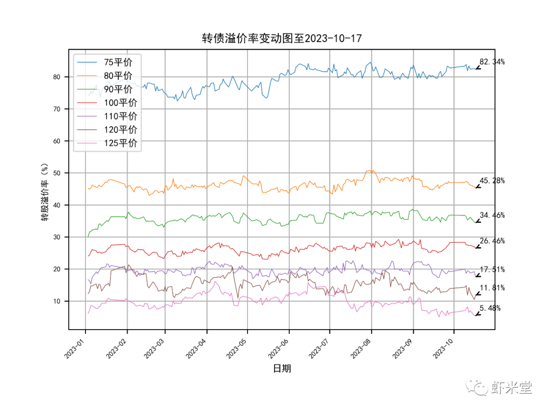 3.转债溢价率,80-110平价的转债溢价率基本都有下滑。百元溢价率下滑到26.24%。90平价的溢价率倒是6月份以来的新低了,34.46%,天箭属于这区间。