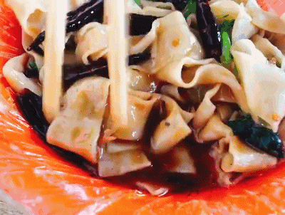 提筷下面,不可有任何耽搁,面条吃起来劲道入味,沾满辣椒油大口吸溜,整个嘴唇都是一层油辣子。