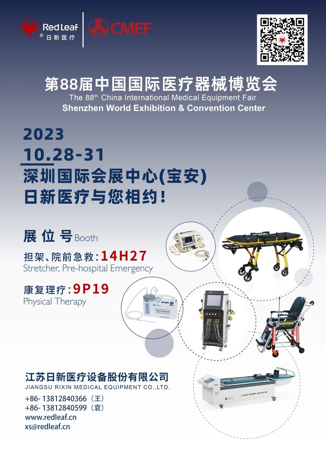 欢迎莅临日新医疗展台:14H27(院前急救)、9P19(康复理疗)!