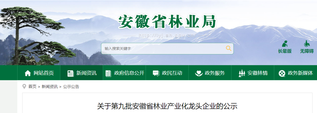 关于第九批安徽省林业产业化龙头企业的公示
