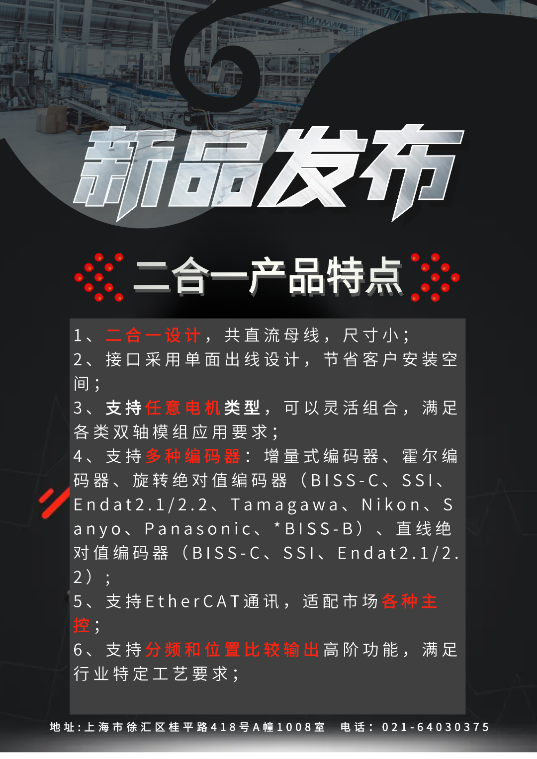 3、驱动器尺寸小,靠近电机安装,有利于设备的模块化设计;