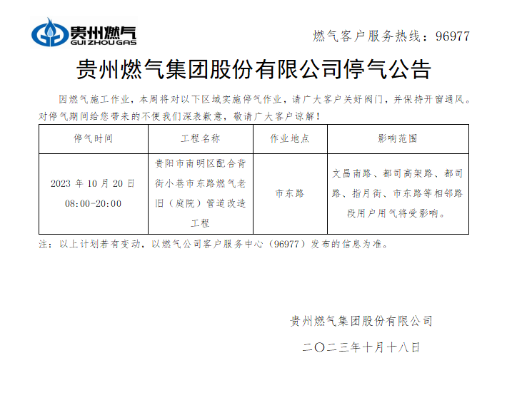 注:以上计划若有变动,以燃气公司客户服务中心(96977)发布的信息为准。