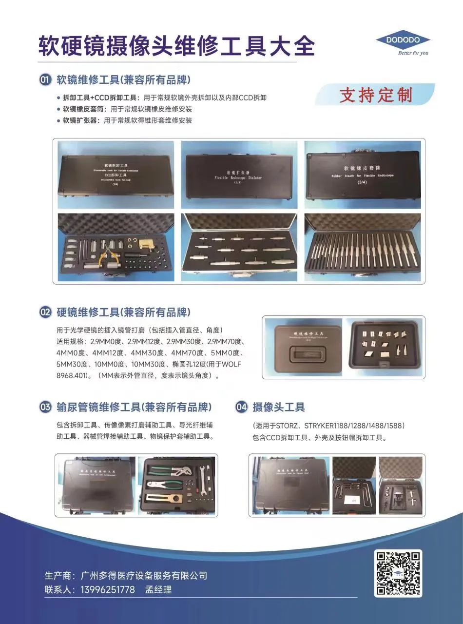 广州多得研发并集成了软镜、硬镜、摄像头、输尿管镜等4大类80余件工具,能够兼容大部分品牌的部件维修。