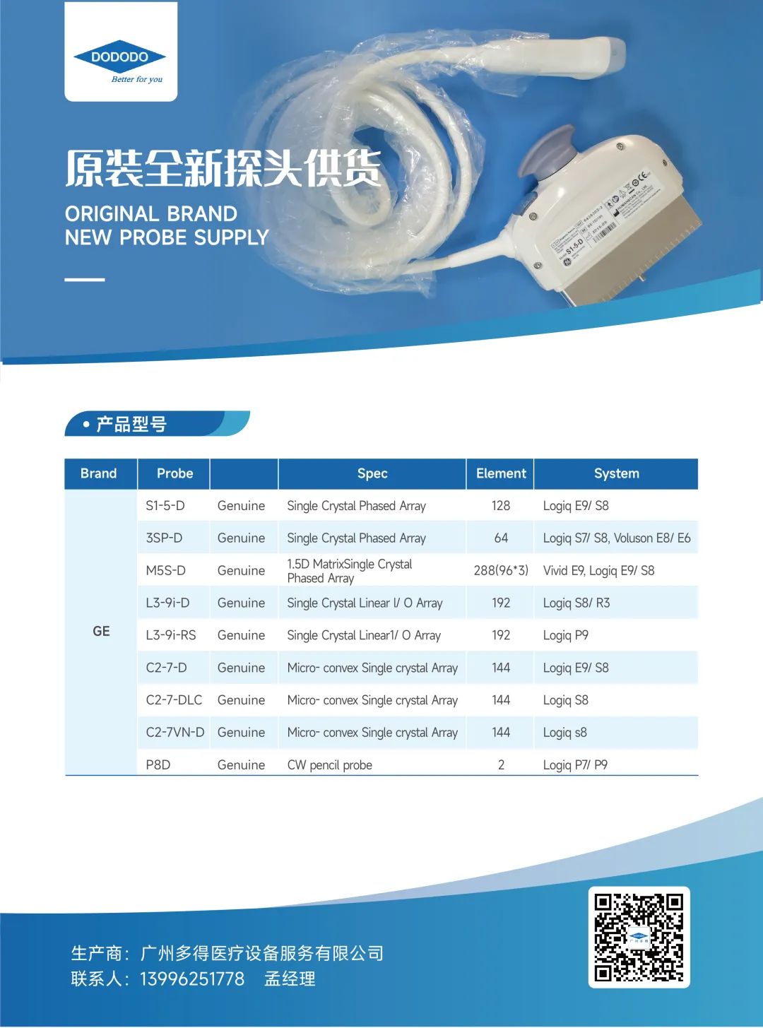广州多得提供GE等各大品牌厂商原装全新探头,竭诚提供优质服务。