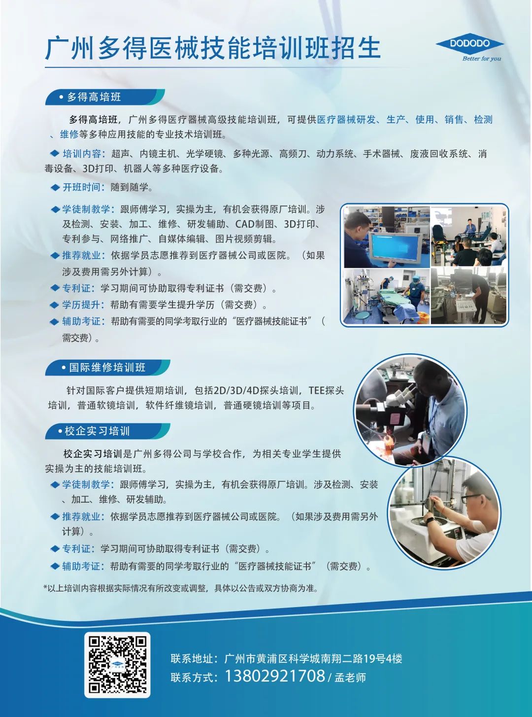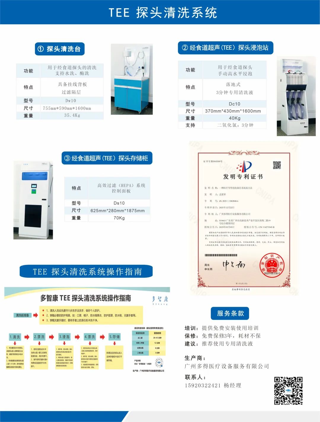 这9款产品服务内容包括:手术废液收集系统、微酸性电解水发生器、TEE探头清洗系统、基础款步进器、万能支臂、软硬镜摄像头维修工具大全、维修服务、原装全新探头供货、广州多得医械技能培训班招生。