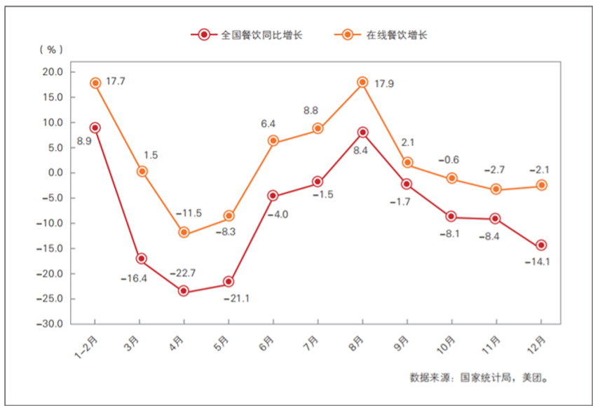 图1-1 2022年按月份全国餐饮同比增长