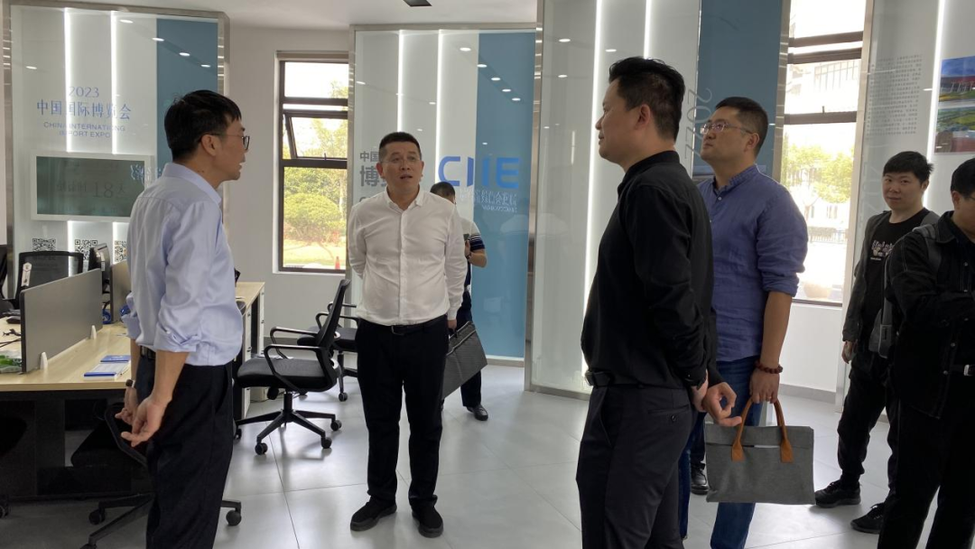 随后,钱斌一行来到进博会前线指挥中心,与相关单位探讨指挥大厅硬件设施、设备通讯、巡查上报方案等工作的准备情况。钱斌强调,要紧抓工期,持续完善平台建设,宣贯工作方案,全力以赴办好家门口的进博盛会。