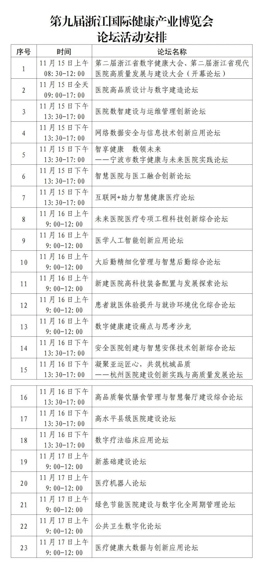经浙江省清理和规范庆典研讨会论坛活动工作领导小组批准,由浙江省卫生健康委、浙江省发展改革委、浙江省经信厅主办,浙江省健康服务业促进会承办的第九届浙江国际健康产业博览会将于2023年11月15-17日在杭州举行。现将有关事项通知如下: