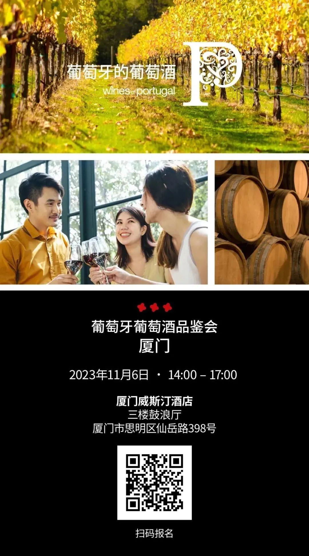 扫码进入葡萄牙葡萄酒厦门品鉴会小程序页面,参展酒庄及酒款信息抢先看!