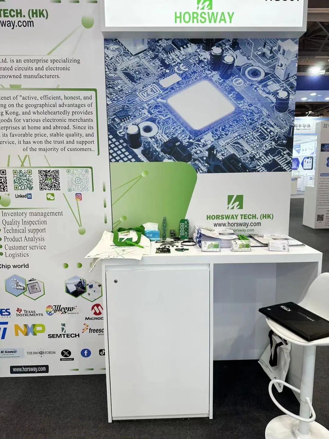HORSWAY TECH (HK) 展位成为本次展会的一大亮点,我们展示了一系列最新的产品和技术,包括新系列表面贴装电容器、高性能功率电感器、新型汽车传感器以及电阻器、电容器、二极管、电感器等产品。公司还参加了多场技术研讨会,获得业内人士的踊跃参与。