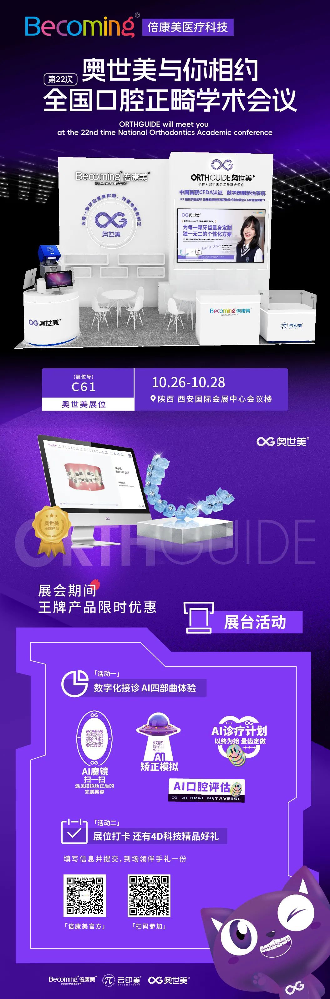 我们将与来自各地的口腔精英大咖齐聚一堂,共同探讨口腔行业的未来蓝海。倍康美代表着数字化固定正畸和数字化种植领域的科技创新前沿,将会为口腔行业提供更加高效、精准,更加符合医生和患者需求的治疗解决方案。