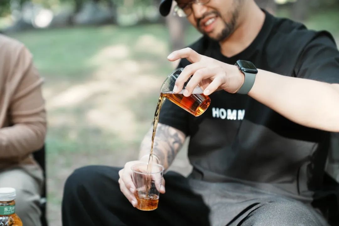 都不用多介绍,你随便拿瓶乌龙茶,口重口轻的自己拿捏比例,一点儿技巧都不用,调出来的“乌龙嗨”就足够美味。吧勺算啥,两个杯对冲一下,主打就是一个随意。