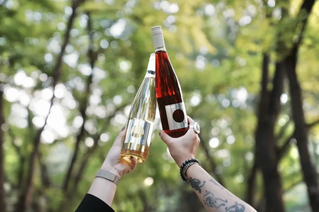 林多斯「黑瓶第一版」 黑漆漆的瓶身在山野林间显得可酷了,但倒出来的酒液却是满溢甜熟韵味的丰润果香,反差感直接拉满!