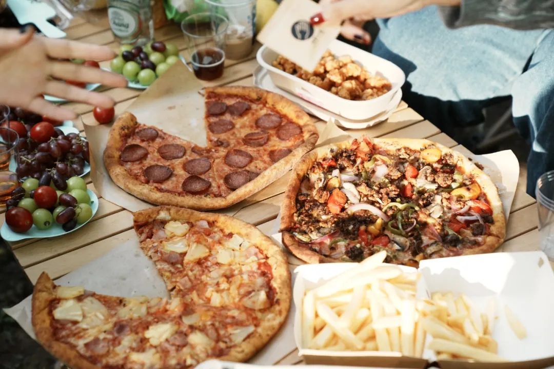(朝阳公园不是专业的露营地,和我们一样“拖家带口”的团建请保护好周边环境,千万别留下垃圾什么的)支上桌椅板凳,掏出甜甜瓜果,再来几张喷喷香的披萨,造就完了!