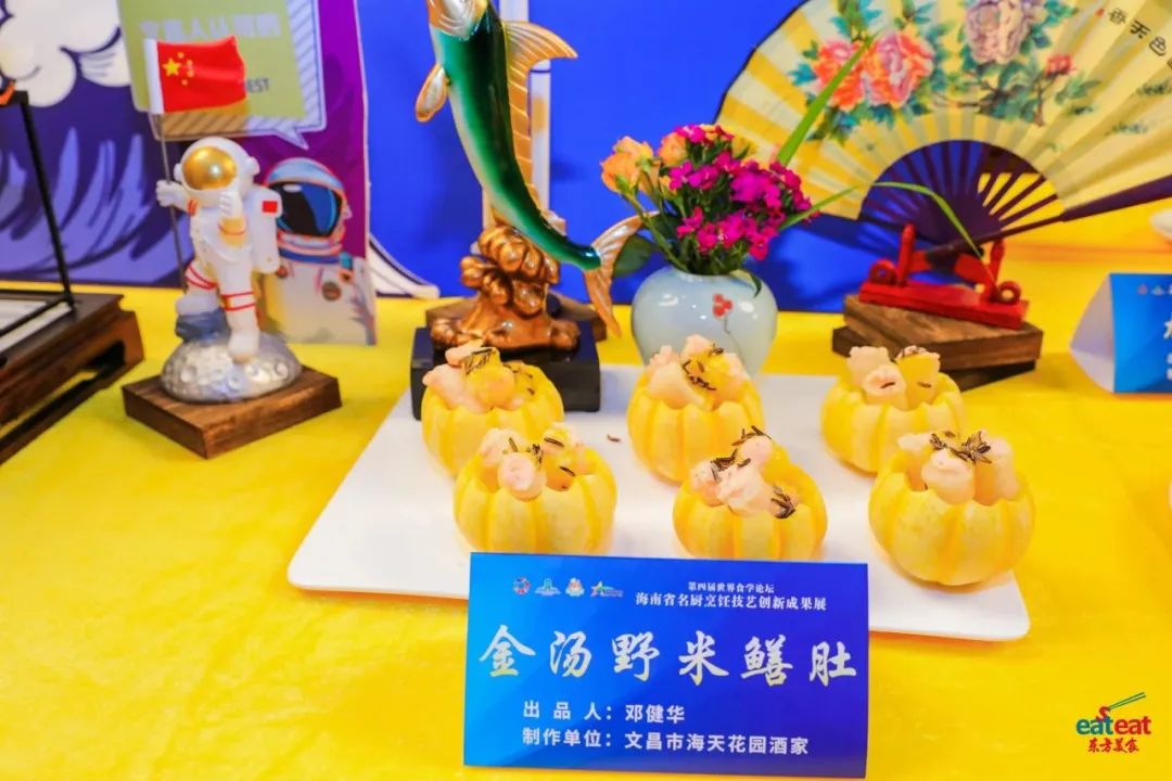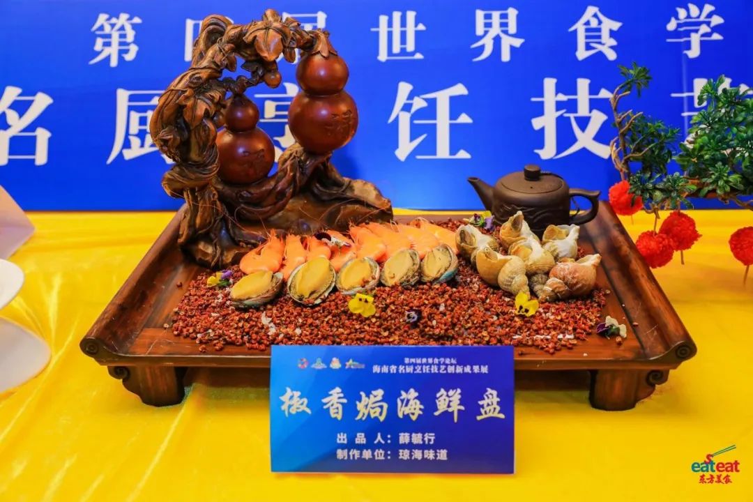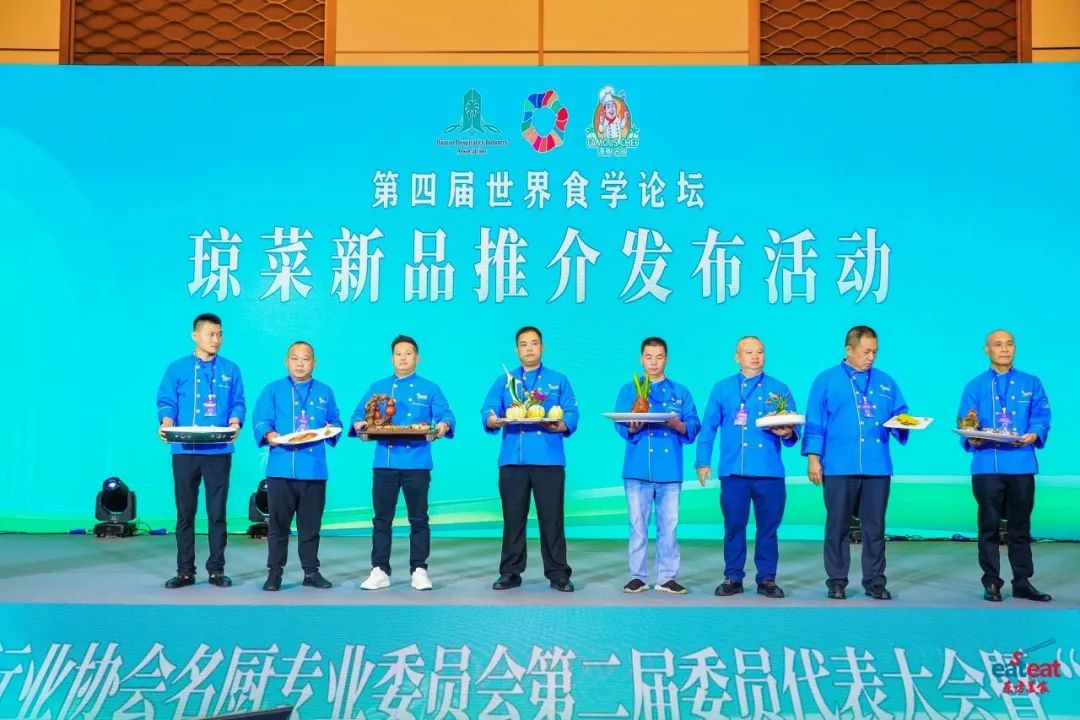 为更好弘扬饮食文化,交流烹饪技艺,创新琼菜新品,大会同期举办第四届世界食学论坛“琼菜新品推介发布活动”。在“---守味,创新,融合----海南省名厨烹饪技艺创新成果展”上展示88道菜品,推介发布“琼A鱼羊恋、鱼跃龙门、锦簇、斑斓芝士焗海螺、一掌定乾坤、金汤野米膳肚、椒香焗海鲜盘、秘制黑猪爽肉”等琼菜新品。