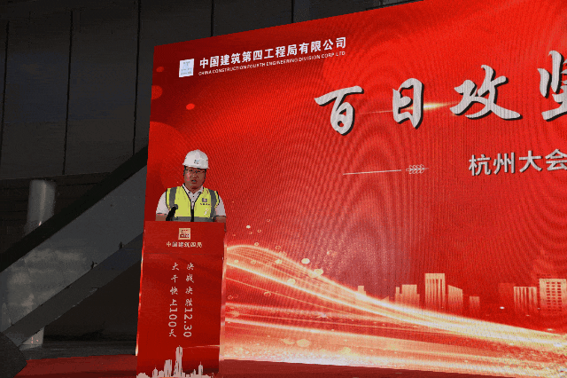 10月17日,杭州大会展中心一期项目施工总承包单位组织召开“百日攻坚 决战决胜12·30”暨“决战攻坚”动员会,中建四局副总经理李毅、中建四局六公司、华东分公司领导出席,各分包分供方公司负责人、项目负责人、中建四局项目管理团队及一线工友100余人参加。杭州市会展新城开发建设有限公司董事长蔡宏伟、副总经理陈骁应邀参加。