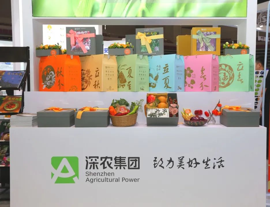 糖酒会期间,展区集中展示了深农“应时而食”主题系列节气盒子、“深农农场”标准化特色农产品以及旗下农产品流通领域食品质量安全综合服务机构F.Q.T和农产品智慧流通工业设计研究院相关业务和成果。