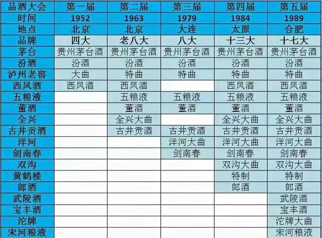 四大名酒、老八大名酒、新八大名酒、十三大名酒,包括十七大名酒,大家看这张图就一目了然了。