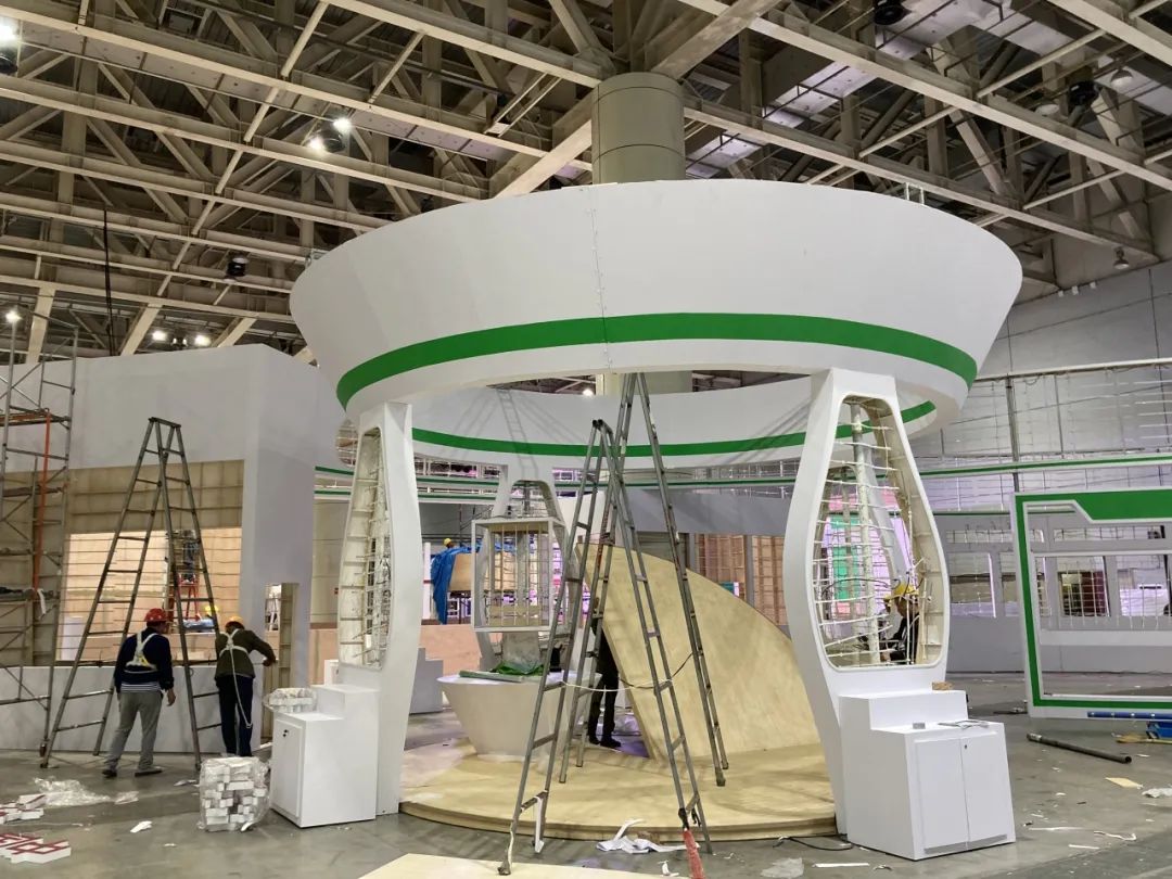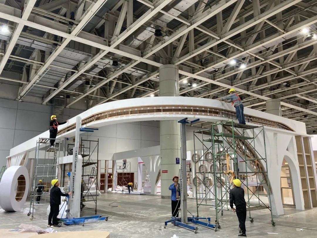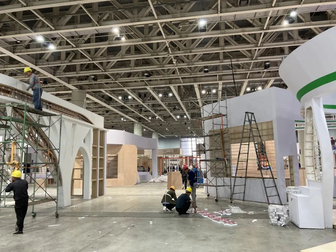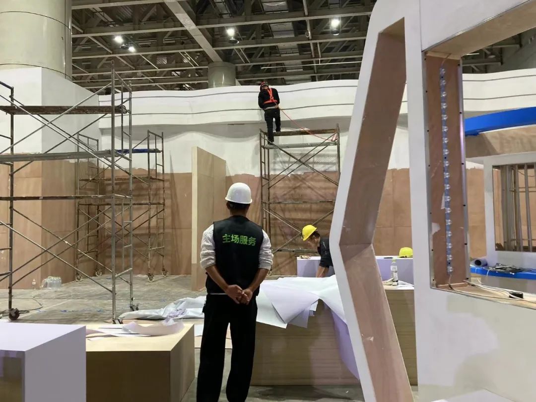 据现场搭建的负责人介绍,今天下午所有展台的搭建工作将全面竣工,局部的美化和亮化明天上午可全部完成,参展商可同步入场进行相关展示产品布置。
