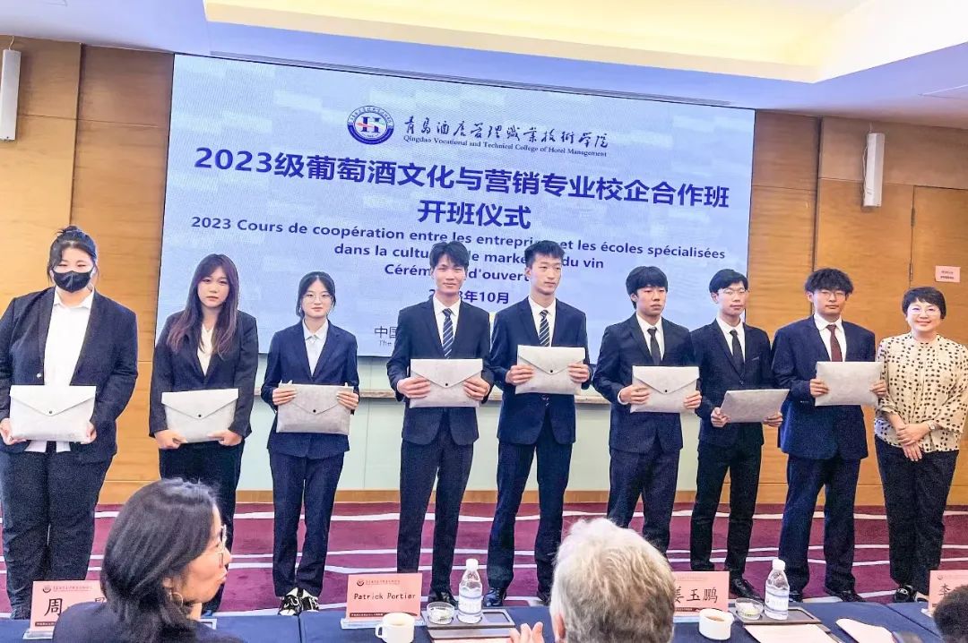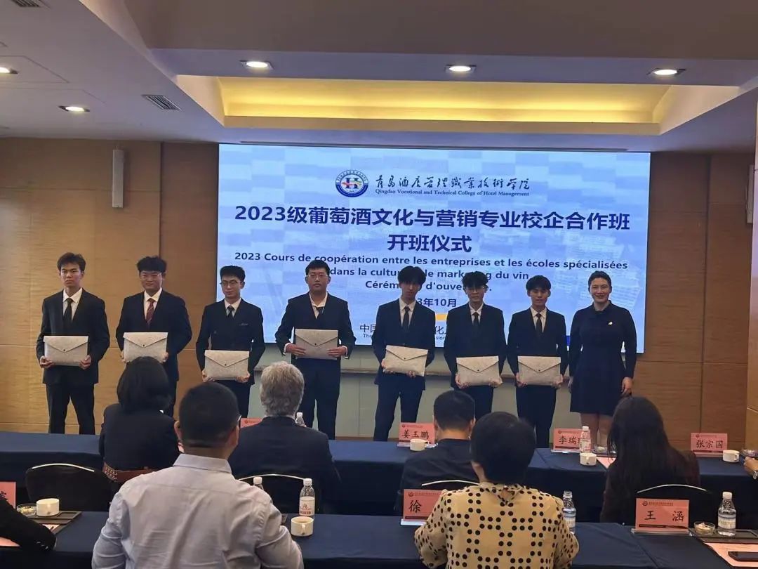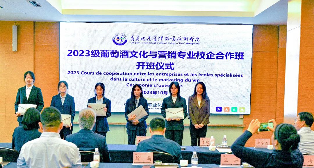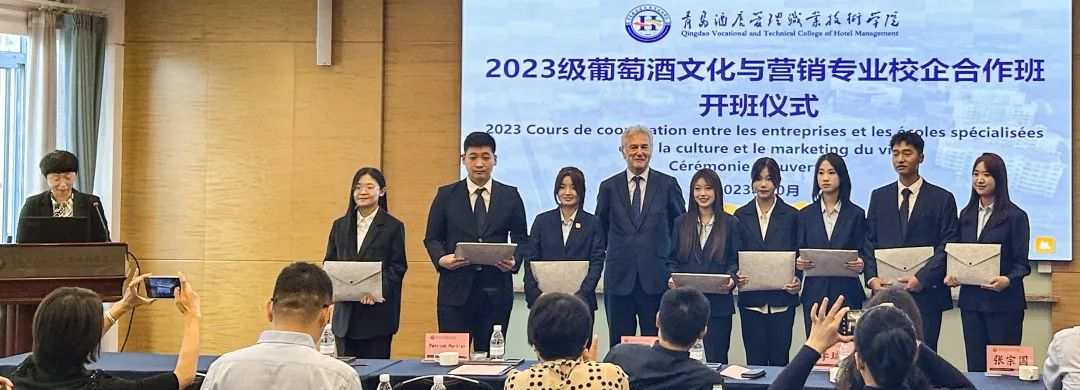 10月17日下午,2023级葡萄酒文化与营销专业校企合作班开班仪式在海斯曼数字酒店多功能厅举行。法国Cafa葡萄酒烈酒学院校长Patrick Portier、校长助理周一晨、中国总校校长李瑞璇、山东校区校长郄帅才、山东校区教学主任王涵、山东校区校企合作处主任谈睿,我院校长姜玉鹏、副校长张宗国,酒店管理学院院长冷雪艳、酒店管理学院党总支书记徐莉、葡萄酒文化与营销专业负责人程彬参加活动。