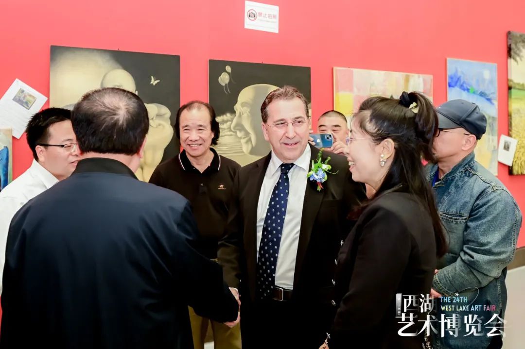 盖美瑞·吉利先生代表意大利艺术家联盟以及海外艺术机构和海外参展艺术家发表了一番讲话。他强调了杭州作为文化历史名城的吸引力,同时赞扬各界的艺术家,无论从事油画、版画或其他形式的艺术创作,都表现出极大的用心和热情。他呼吁前来参观的观众,不仅仅局限于拍照,而是要用心感受艺术作品背后的艺术力量。这种呼吁表明了对艺术的尊重和理解,强调了艺术的价值以及它在促进文化交流和理解方面的重要作用。