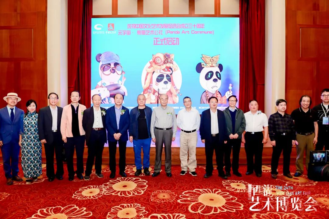 同时,现场庆祝了"中国文化艺术发展促进会成立三十周年",以及宣布"元宇宙·熊猫艺术公社"项目的启动,这个艺术社群将涵盖传统艺术、当代艺术、工艺美术、非遗传承等多个艺术领域,促进数字化转型、创造价值、连接艺术爱好者和收藏者,使数字艺术品收藏成为潮流,推动艺术与其他行业的融合与赋能。