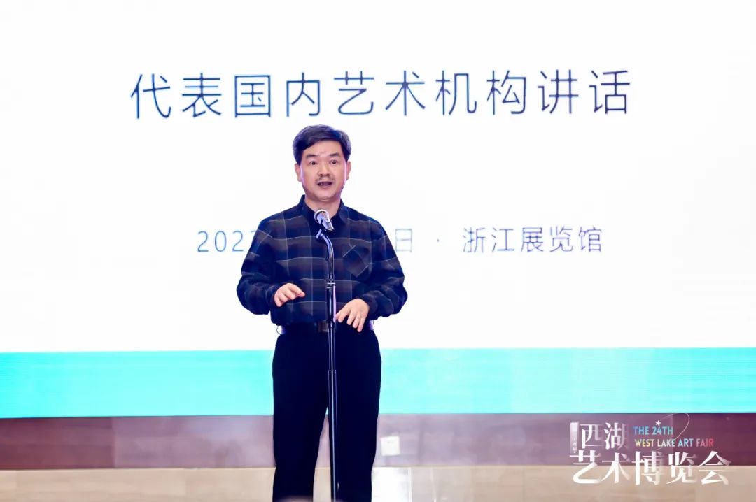 西湖艺术博览会艺术总监、长三角艺术管理联盟发起人、中国美术学院教授单增先生代表组委会发言称“我们当下也面对着AI技术与数字媒体的冲击,如何在这一信息时代,通过作品传递艺术家的真情,是个值得讨论的议题。当代艺术品与传统艺术品将在本次艺博会的5个板块一同展出,希望能给大家带来不错的观展体验,同时,本届西湖艺术博览会的主题是艺启共享,其中有专门设置的少儿展览。这一独特的展区将为少年儿童们提供一个展示他们创意和才华的平台,鼓励他们参与并体验艺术的魅力。” 单增先生同时也鼓励大家踏上这次艺术之旅,发现并感受艺术的魅力,共同探讨艺术的未来。