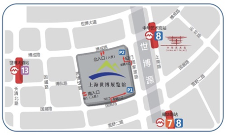 (3)地铁7/8号线至耀华路站4号出口,至上海世博展览馆南广场入场。