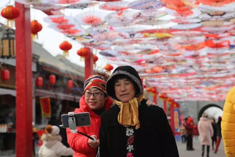 惬意地逛着热闹的大庙会