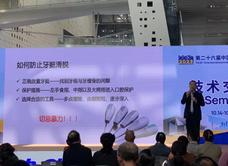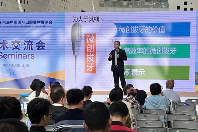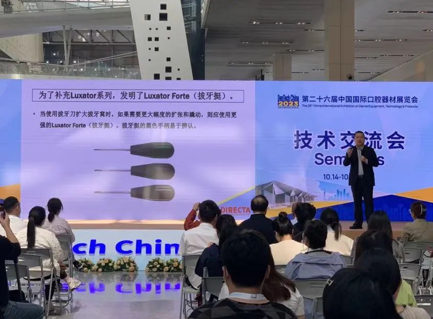 10月16日11:00-12:00在上海世博展览馆1楼中厅南面会场举办Directa拔牙刀学术交流,主题:《微大于其细——浅谈微创拔牙》;本次邀请了王庆老师为大家带来了精彩讲座,现场掌声不断,热火朝天。