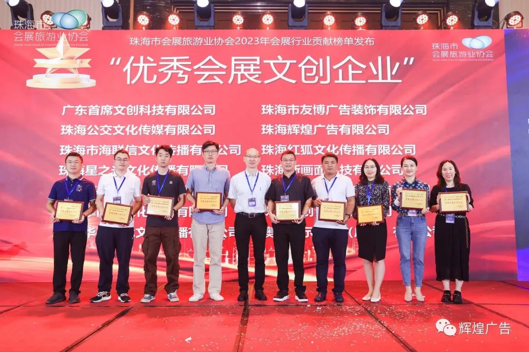 辉煌广告获得“优秀会展文创企业”总经理 丘志敏先生上台领奖。