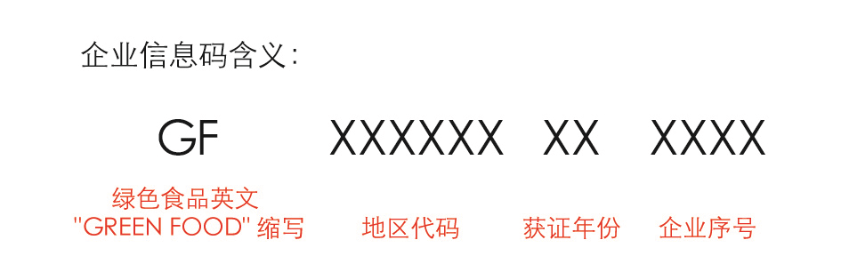 14.绿色食品企业信息码(GF XXXXXX XXXXXX)是中国绿色食品发展中心赋予每个绿色食品标志使用人的唯一数字编码。